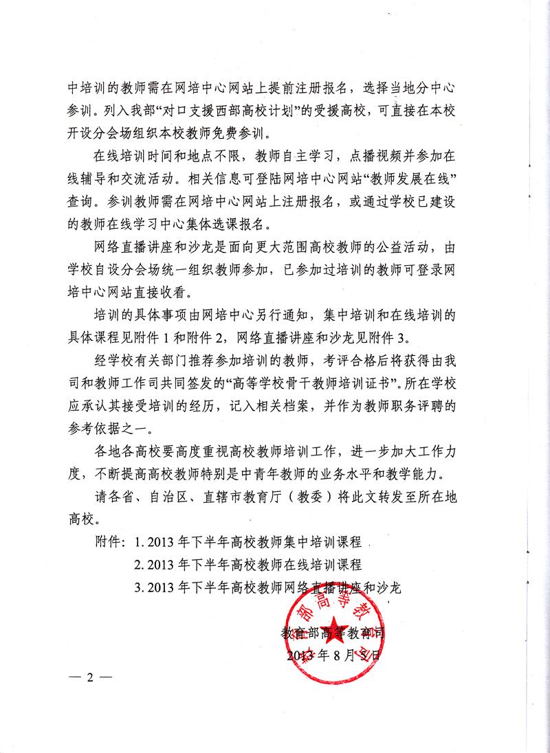 关于公布2013年下半年全国高校教师网络培训计划的通知
