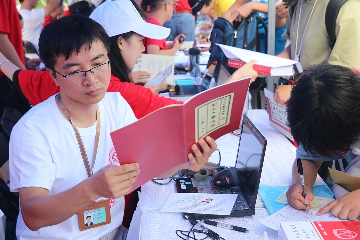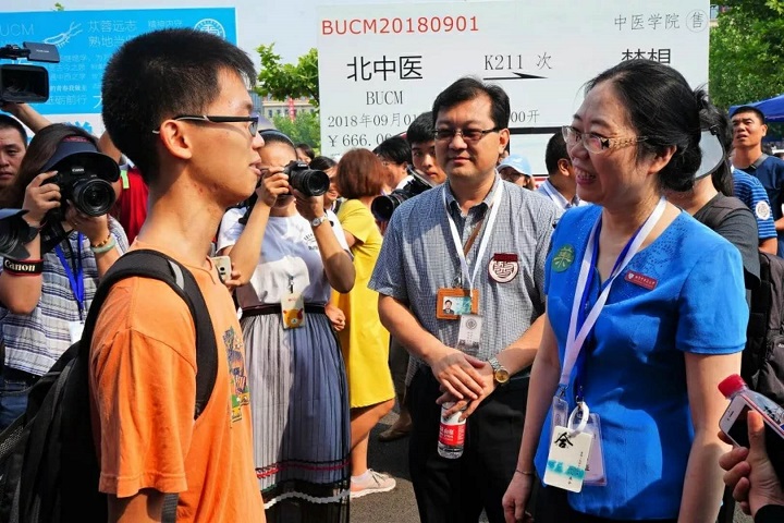 在迎新现场,学院精心设置了“北中医号”高速列车模型及创意车票,寓意为从北中医开往梦想的快速列车;设计了“我们开学啦”主题背板,新生们纷纷在背板前留下自己精彩瞬间;为了能够帮助新生们尽快熟悉校园环境,院学生会贴心的准备了手绘地图和新生指南,在地图上呈现了校园内楼群的分布以及学校周边的“大学圈”,手册中详细地为新生介绍了学校以及学院的各种事宜;同时,在迎新现场,新生们纷纷关注yl8858永利集团官方微信以及团学小微的公众号,并领到具有yl8858永利集团标识的卡套,让学生们的学院归属感油然而生。