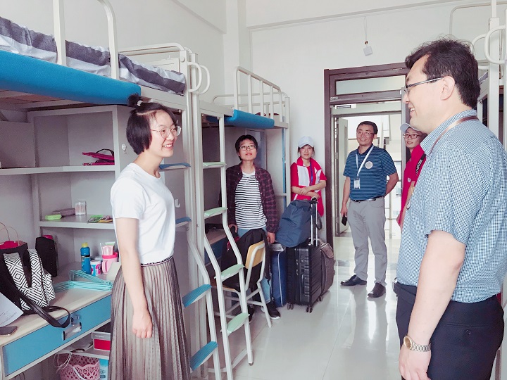迎新当天上午,学办全体老师、班主任及迎新志愿者就来到现场准备。随着新生的陆续到来,杏林志愿者们积极引导新生按照流程报道,报道现场依次设置验证注册、材料提交、发放资料、宿舍引导等多个服务环节,工作人员各司其职,协同配合,保证了迎新工作高效有序的进行。学院班子成员也来到迎新现场,与报道学生和家长亲切交谈,并慰问班主任老师和志愿者同学;中午,孙传新书记和赵建磊副书记还走进新生宿舍,向新生和家长了解入学准备、宿舍环境等相关情况,并鼓励同学们尽快适应大学生活、投入专业学习,送去了学院的贴心关怀。