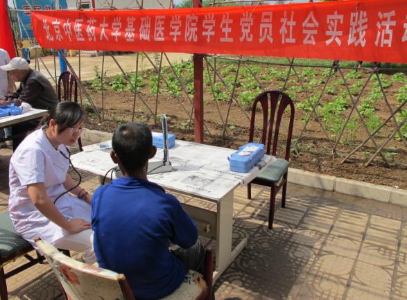 为了深入贯彻落实科学发展观,坚持服务社会, 2010年5月31日,基础医学院20余名党团干部和学生骨干前往怀柔区红螺老年公寓,开展基础医学院学生党员社会实践活动“。当日上午,学院党总支副书记杜伟带领学院资深教师和高年级学生在红螺老年公寓院内开展义诊服务,义诊共持续2个半小时,为公寓内近30名鳏寡孤独残障老人提供了健康咨询、诊病、量血压等服务。党员同志们在为老人送去健康知识和医疗服务的同时,也为他们送去了慰问品和衷心祝福。同时学院还组织学生对当地村民的健康状况进行了调查,并将把调查结果作为下一次实践活动的重要依据。