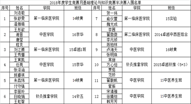 2018年度yl88858永利中国基本功大赛进级半决赛名单