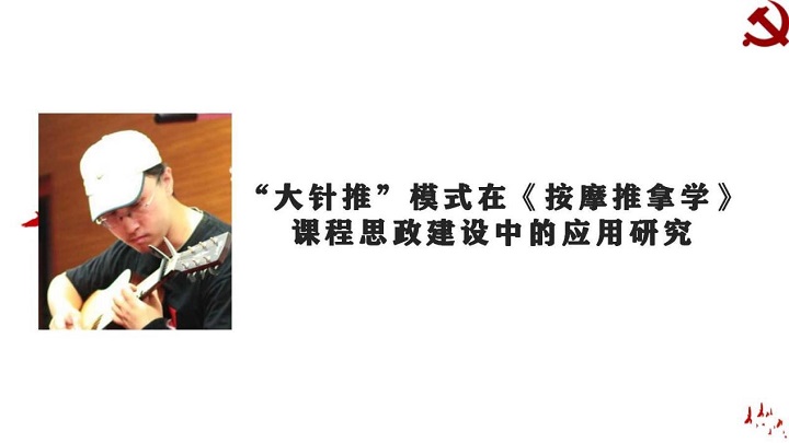本次讲座第一位讲者是来自针灸推拿学院推拿系的刘佳利老师。刘老师获得“北京高校第12届青年教师教学基本功大赛二等奖”等诸多奖项。刘老师的演讲妙语连珠,激情澎湃,以“大针推”模式在《按摩推拿学》课程思政建设中的应用研究为例,为大家介绍了针灸推拿课程思政建设情况。讲座第二位讲者是来自yl8858永利集团解剖教研室的盖聪老师。盖聪老师是北京市课程思政示范课程教学团队成员,也是校级优秀主讲教师。盖老师的演讲深入浅出,围绕线上线下结合模式重点介绍了关于解剖课程思政建设情况。第三位讲者是我校英语系党支部书记李晓莉副教授。李老师教育教学经验丰富,是我校校级优秀教学团队成员。李老师主要介绍了《中医英语》课程思政建设的宝贵经验。讲座最后一位讲者是东直门医院的李多多教授。李老师是我校课程思政示范课《推拿学》和一流本科课程建设点项目线下一流课程《推拿学》负责人,在教育教学中具有丰富的经验,李老师演讲主题为思政背景下《推拿学》课程建设经验。