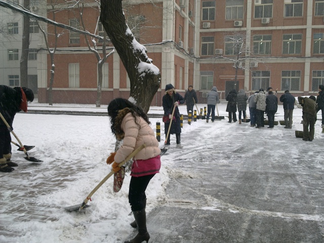 雪美人更美——基础医学院扫雪纪实