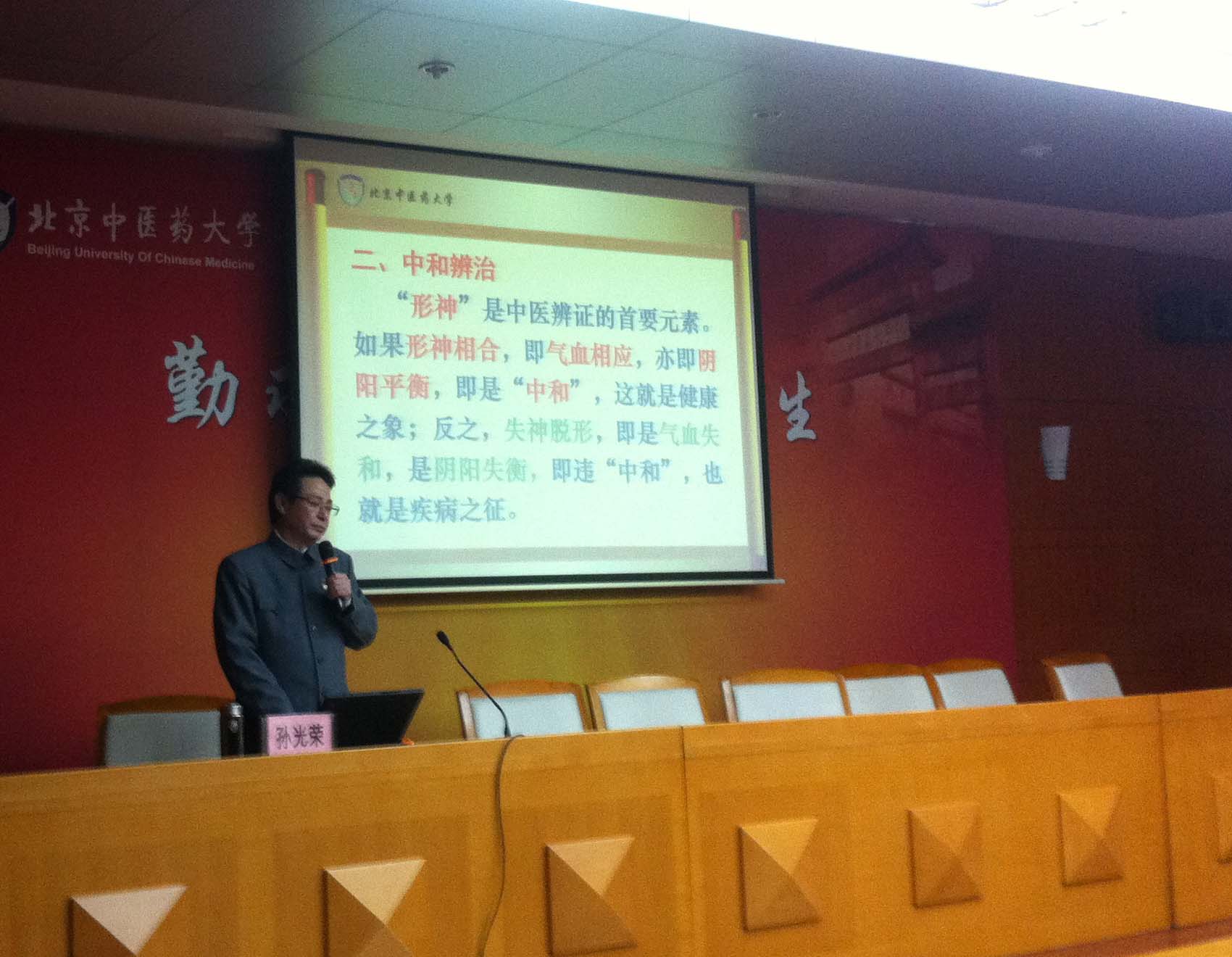 yl88858永利中国2014年度学术节开幕之际,2014年11月25日下午2点,作为基础医学院分会场学术活动的开篇之作,yl88858永利中国教授、国医大师孙光荣老师为基础医学院师生做了一场关于“老中医药专家学术思想和思辨特点的认知与继承 ——兼论中和思想·中和辨治·中和组方 ”的讲座,旨在提高广大师生继承创新名老中医学术经验的能力。讲座由贺娟副院长主持,基础医学院近200名师生聆听了讲座。