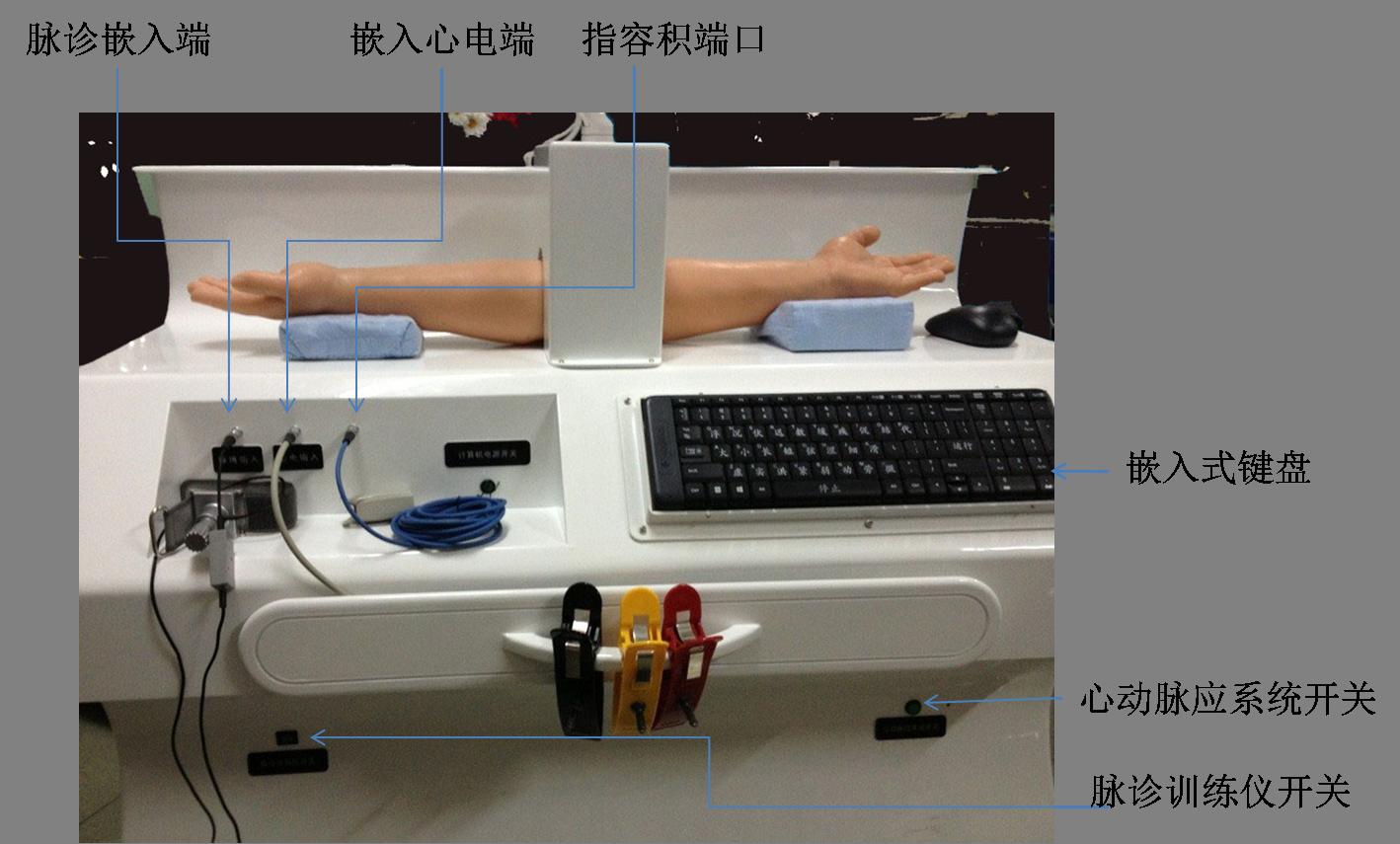四诊合参之心动脉应脉诊训练仪,在原四诊合参操作系统的基础上嵌入位数形势属性分类的操控键盘,控制仿真心泵系统工作。亦可远程复现脉动信息。