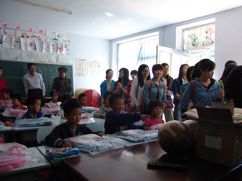 邓栅子小学目前只有学前班和小学一年级的学生,合计40人左右。除了校长以外只有三名老师。孩子们在接到老师和大姐姐、大哥哥们递给的文具和衣物时,露出了甜美的笑容。我们这次还带去了一些体育用品,如跳绳、篮球等,老师和同学们和孩子们一起跳绳、打篮球,孩子们兴奋极了。大哥哥、大姐姐们告诉孩子们不要怕眼前的艰苦环境,一定要树立远大理想,鼓励他们在学习和生活中迎难而上的勇气和信心。此次邓栅子小学之行的活动不仅给山区带来了党的温暖,也给党员教师和学生带来了深刻的党性教育。