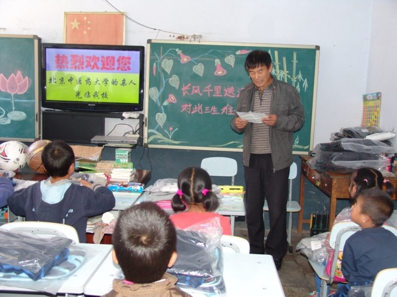 邓栅子小学全称为邓栅子新奥光彩小学,位于河北省丰宁满族自治县,大多数学生因离家较远,平时寄宿在学校中。本次社会实践活动,为邓栅子小学的师生们带来了我校师生捐赠的衣物、书籍、其他学习用品,同时我们还带去了应急用的碘伏和纱布,带去了我校青年党员医疗卫生服务的一技之长。袁校长说这真是贴近生活,最实用的物品。邓栅子村有一个简单的诊所,但却没有大夫,镇上的大夫每周来出诊两次,遇到急病,根本没有办法处理。在这个缺医少药的大山深处,yl88858永利中国每去一次,都可以说是当地群众的福音。