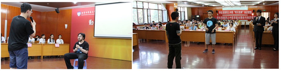 本次竞赛学生报名踊跃,两场比赛各有6支队伍脱颖而出,在总决赛赛场上接受终极考验。“中医学基本理论与知识竞赛”,由张保春教授、王天芳教授、钟赣生教授、谢鸣教授担任评委;“中医四大经典知识竞赛”由贺娟教授、陈明教授、王新佩教授、王雪茜副教授担任评委。经过“牛刀小试”、“你追我赶”、“中医猜词秀”、“眼疾手快”、“智勇大比拼”五个环节的激烈角逐,来自基础医学院的“衷中参西队”和来自第一临床医学院的“三仁队”,分别摘得两场比赛的桂冠。随后,评委老师进行了精彩的点评,博得了在场选手和观众的热烈掌声。