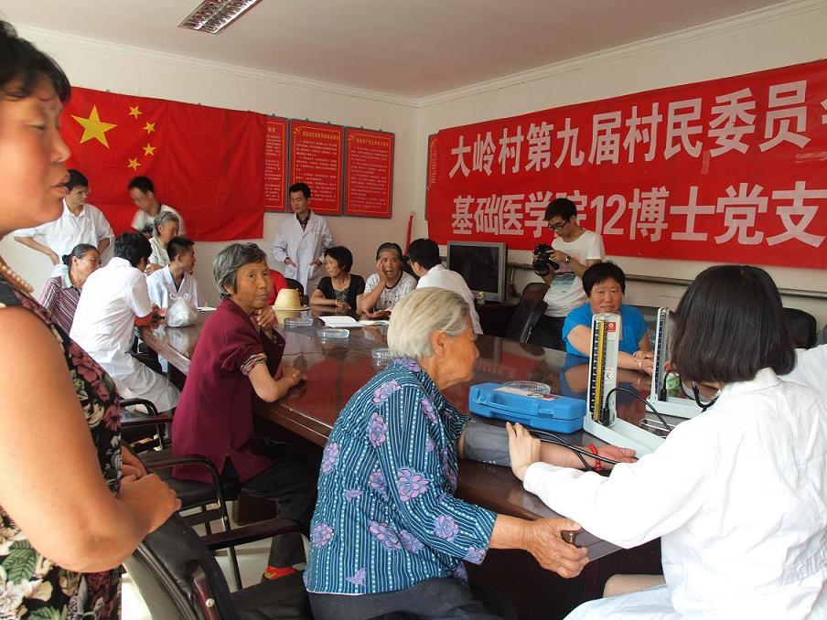 2013年6月13、14日,2012级基础博士党支部组织基础医学院研究生支部党员和积极分子,赴密云县北庄镇大岭村及北庄驻军,开展了为期两天的红色1+1支部共建活动。此次活动经过精心策划内容丰富多彩。此次活动围绕“心系北庄、医回大岭”的主题,开展了三个系列活动:参观承兴密抗日联合县政府旧址,重温温入党誓词;上山采集野生药用植物,;北庄健康咨询义诊,建立中医健康养生知识宣传栏;北庄部队夏季养生讲座,体质问卷调查和健康问诊咨询活动。